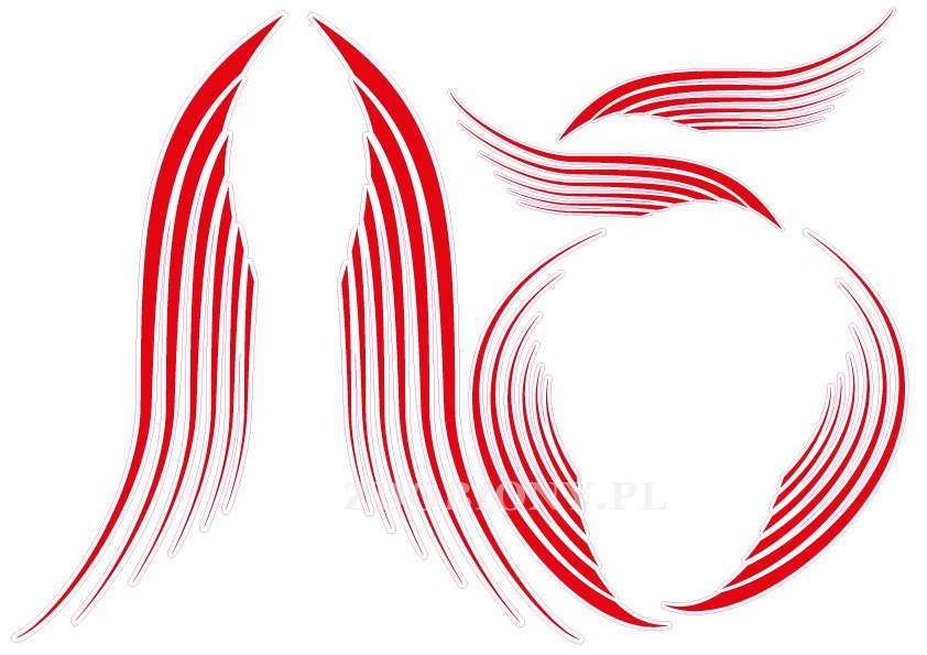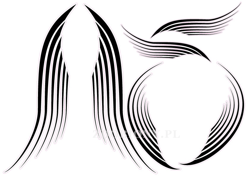 Wycięta po obrysie grafiki, wysokiej jakości zadruk kolorowy na białej lub odblaskowej folii, odporny na ścieranie i promienie UV, naklejka dodatkowo laminowana. Wielkość elementów naklejki :