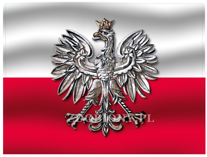 Klasyczna grafika przedstawiająca flagę z godłem Polski.