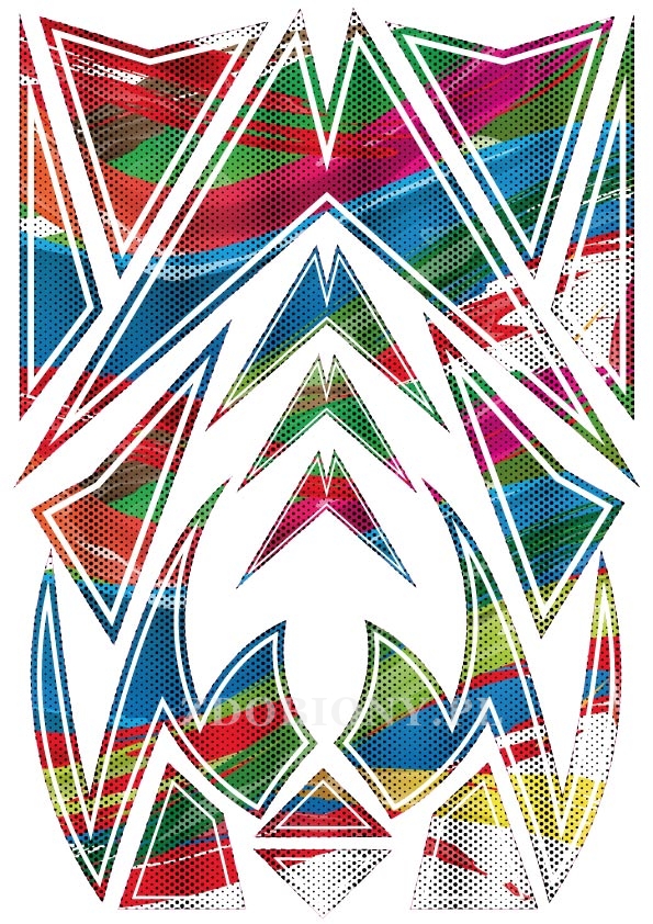 Naklejka EXO stylizowana na kask lub inny element motocykla.
