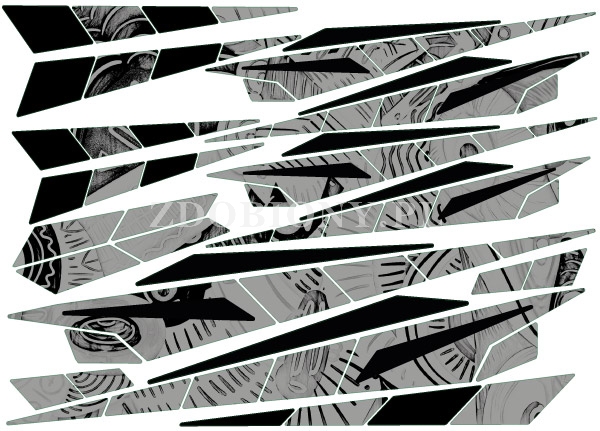 Wycięta po krawędzi grafiki, wysokiej jakości zadruk kolorowy na białej folii, odporny na ścieranie i promienie UV, naklejka dodatkowo laminowana. W zestawie folia transportowa.